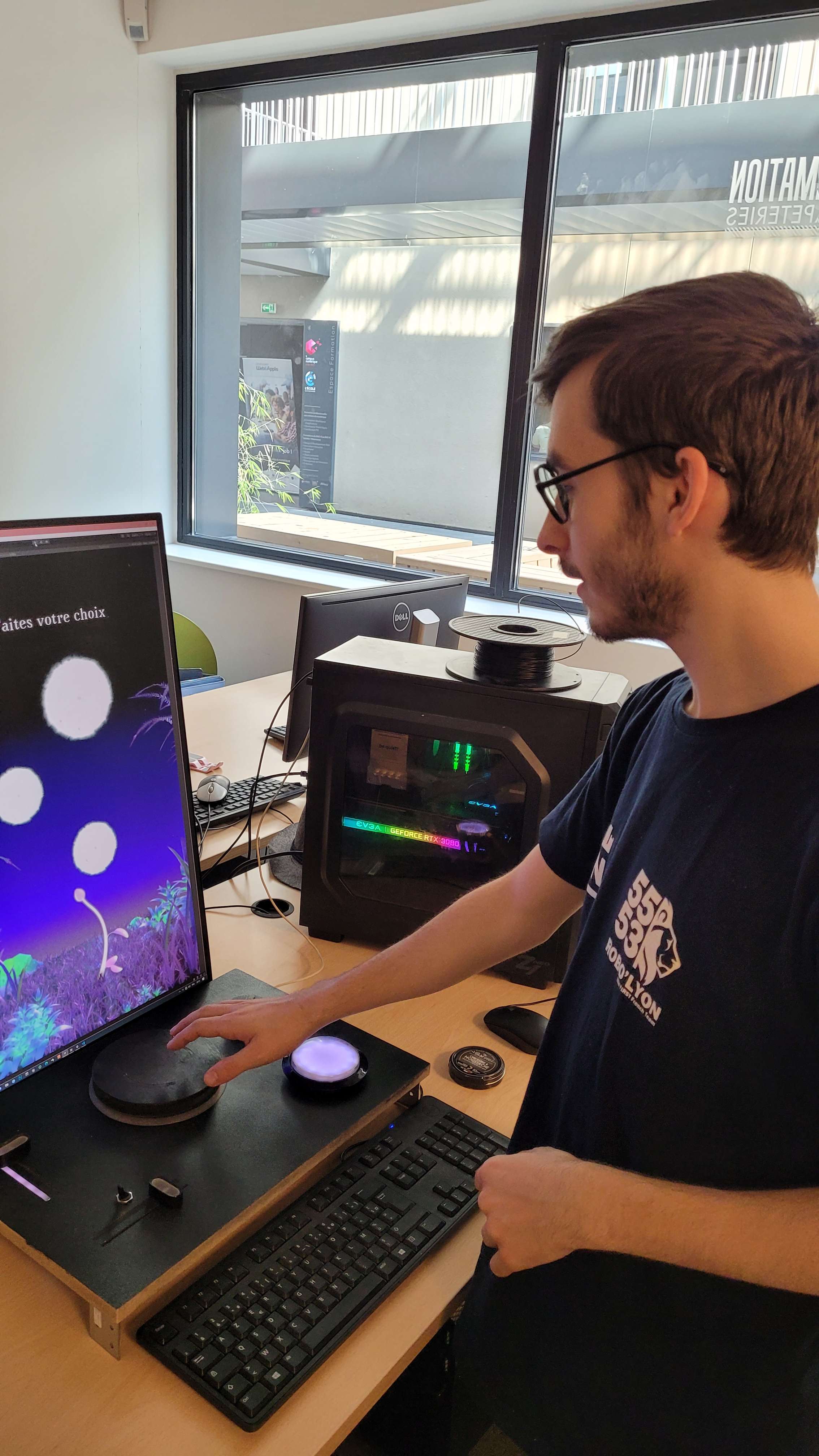 Now that we were sure that it was fun to create a flower in a guided and even predetermined way, we had to improve the fun in direct interactions. Physical interactions are much more engaging than purely digital ones, on screens for example. That’s one of the reasons why we chose to build a physicial interface.