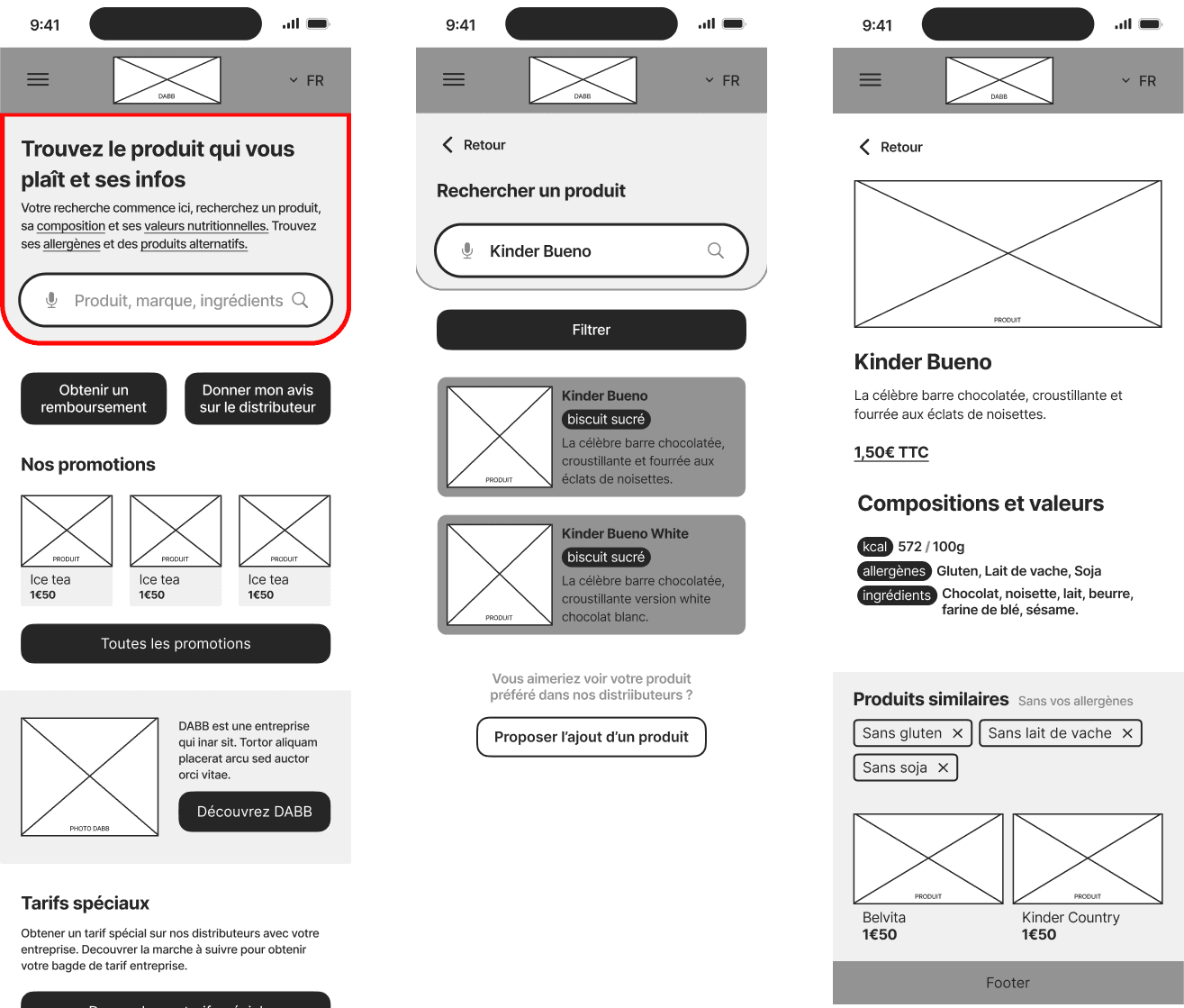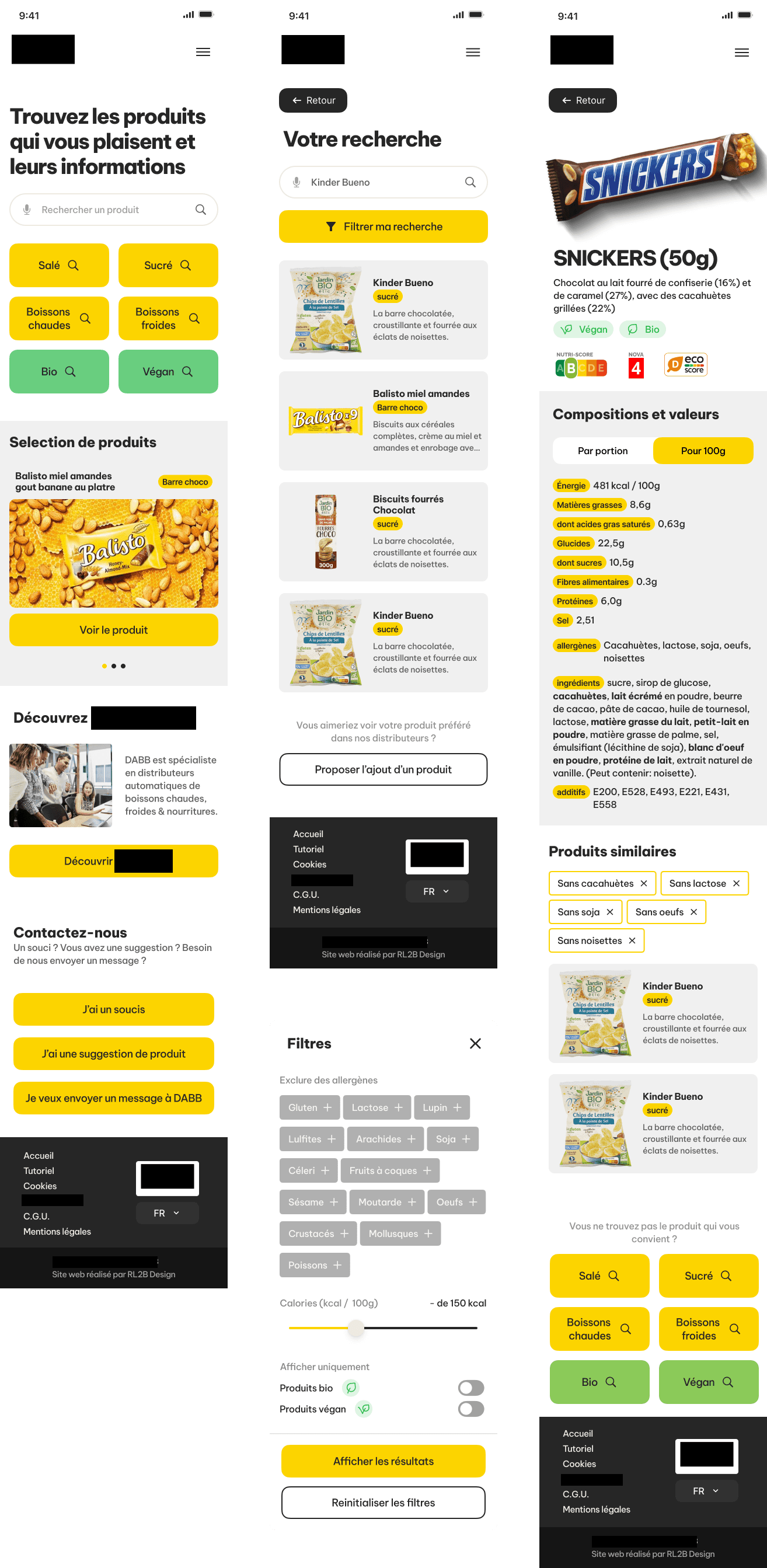 Using metrics from analytics and usability tests I conducted, we got the insight that people didn't search the same way in hospitals and in public places for example. When they tend to search for a category like hot drink ou sweet snacks in shopping mall, they search more by ingredients in hospital.