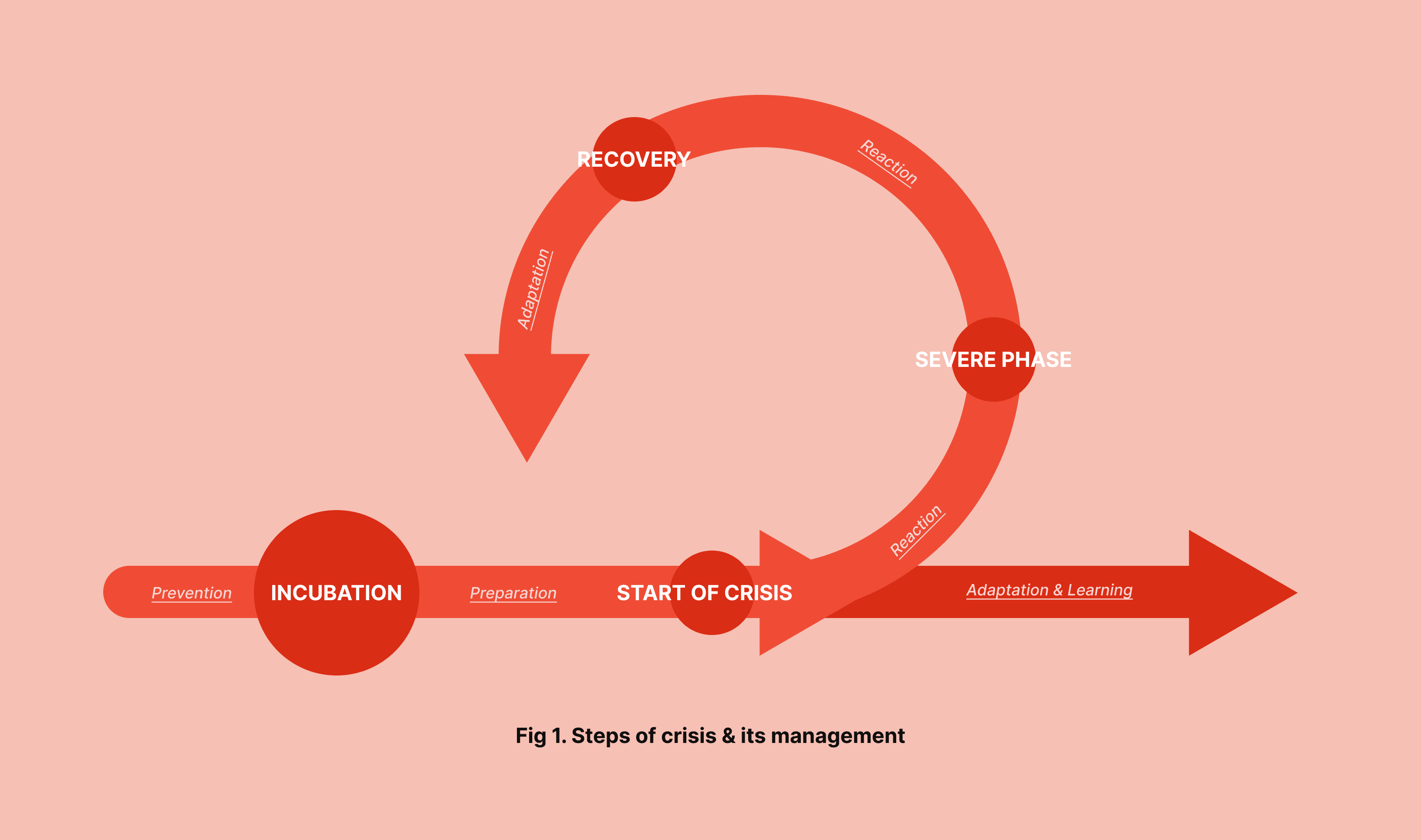 As we can see, the phases deriving from these stages are prevention upstream, preparation just before, reaction during and adaptation after. The most neglected but crucial phase is the downstream learning phase.