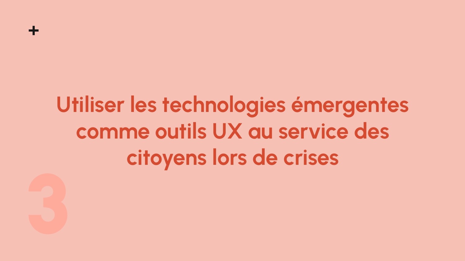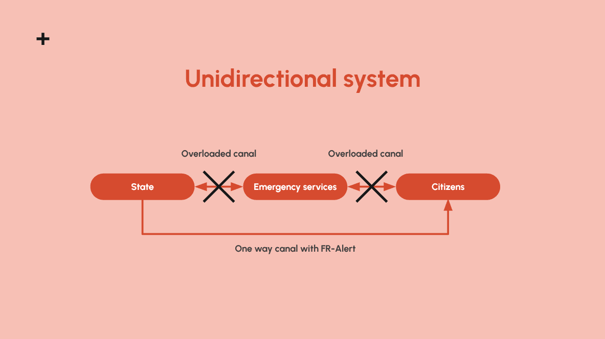 In a crisis context, robust and hard-to-change systems are already in place, to enable improved management via the UX, so we can deduce that the ideal is to link up with the State through better-thought-out, new devices, adapted to needs, and constantly evolving for citizens and emergency services.